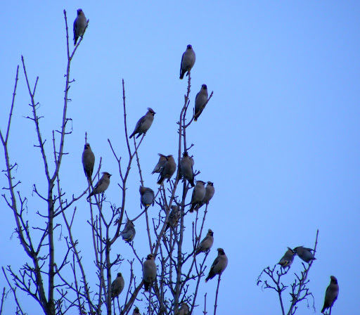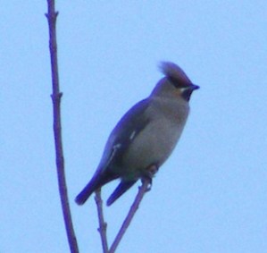 Finally! After two weeks of searching for Waxwings, on Sunday afternoon somebody had reported them by the Royal Mail sorting office on Cappers Lane in Lichfield. When I visited there the first time there was nothing in sight but a couple of other people looking for them. I then returned about an hour later and saw somebody looking at one in a tree. Then after two minutes a flock came and landed in the next tree. The flock was made up of about 30 Waxwings, here are my three photographs of some but they are not very good due to weather conditions. Yesterday I heard that there were about 60 of them outside Tippers and they’ve been there everyday this week. If you are local, why not go and have a look at these beautiful birds!