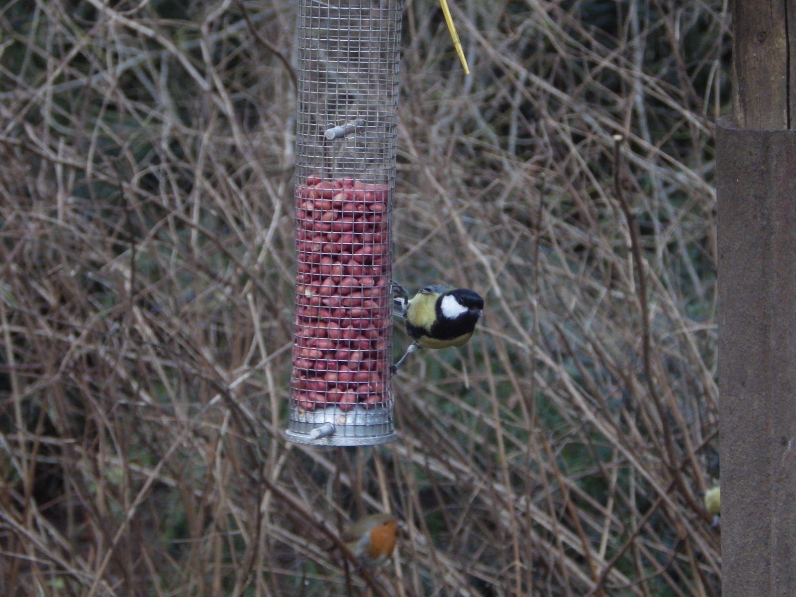 Here is a picture of a Great Tit feeding on a Garden Bird feeder