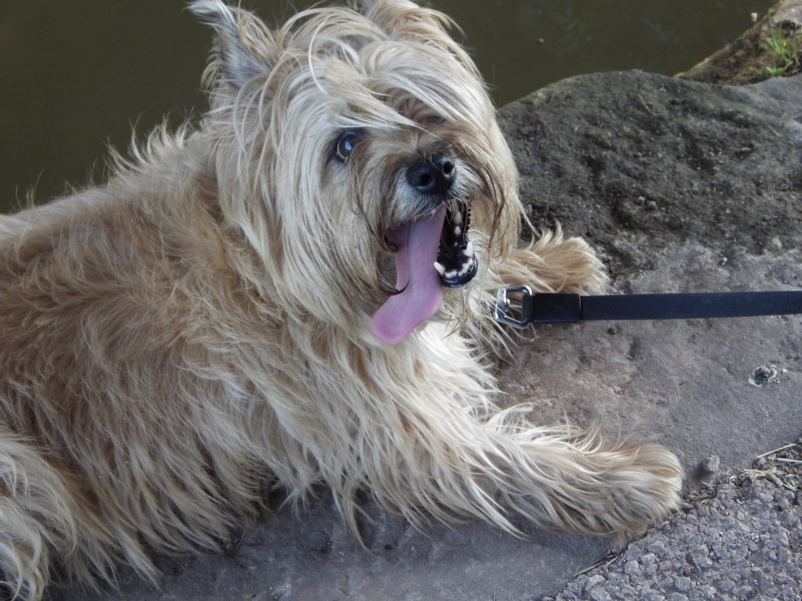 My dog, Rosie cooling down by the side of the canal.