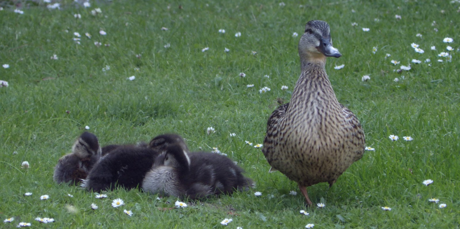 A female mallard with her ducklings,