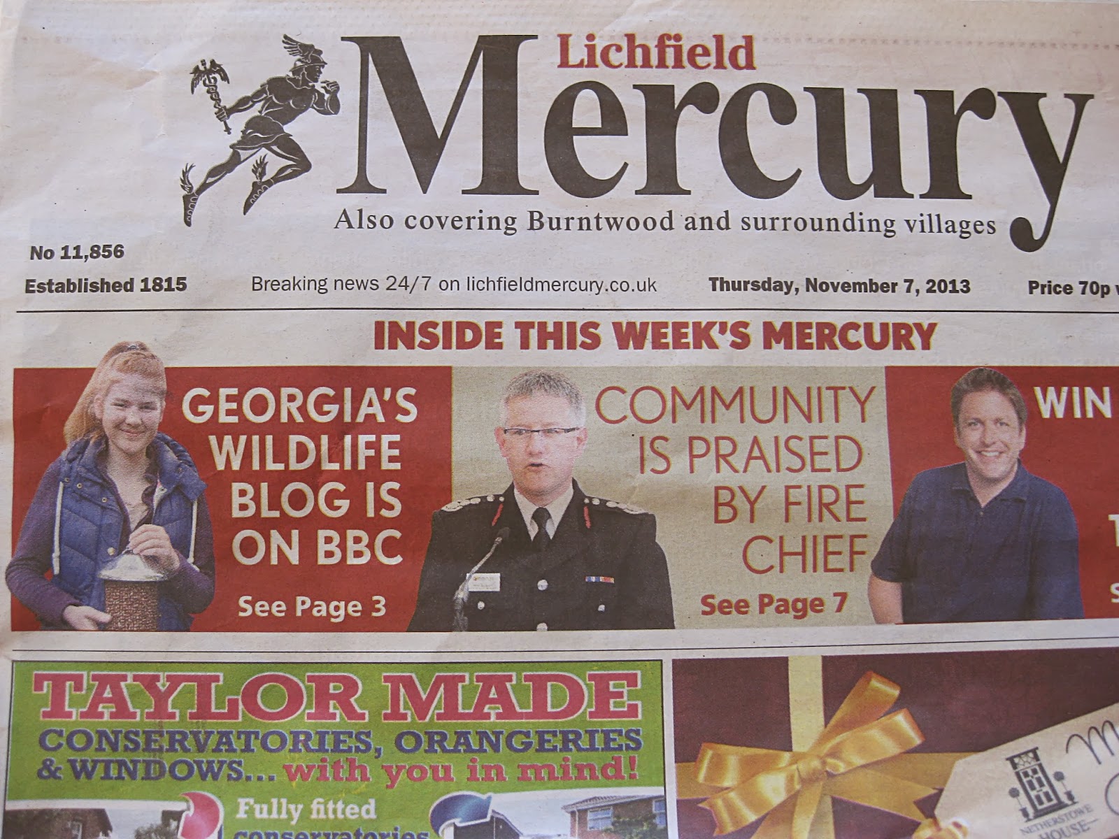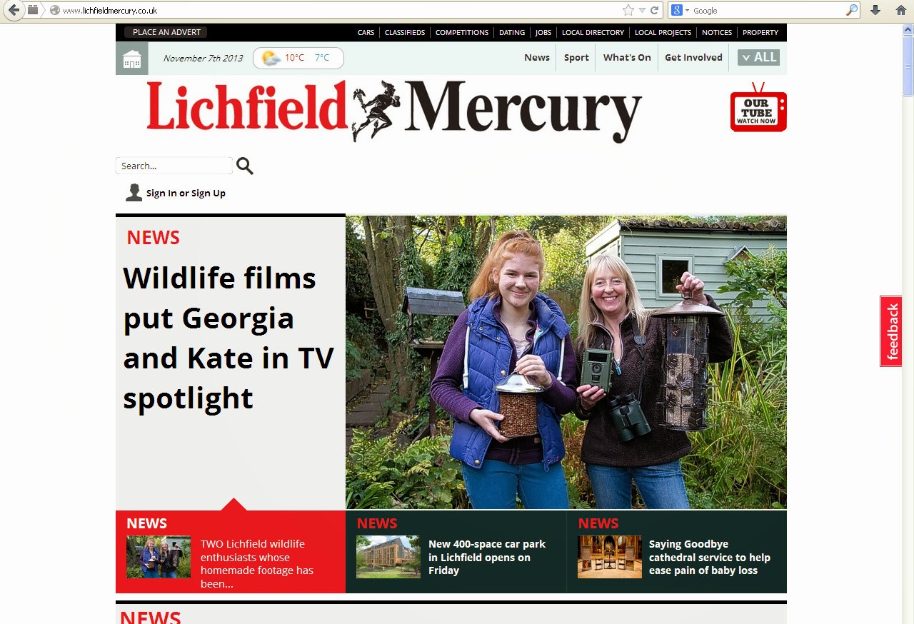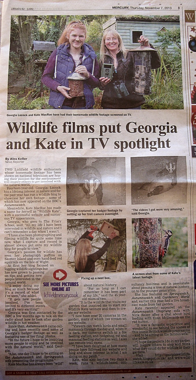 After all of the BBC Autumnwatch excitement a few weeks back, I had an e-mail from a local newspaper reporter (for the Lichfield Mercury) asking me questions so that a story could be put together about myself and Kate MacRae (WildlifeKate), who also had an appearance on Autumnwatch.