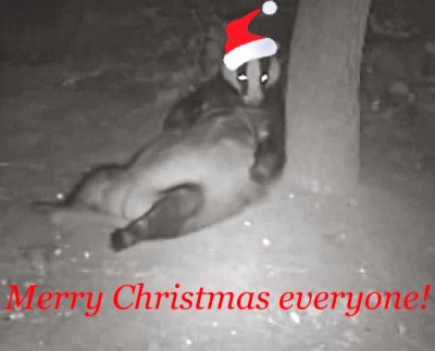 The badger looks good in that hat. I hope you have a brilliant Christmas. From Findlay