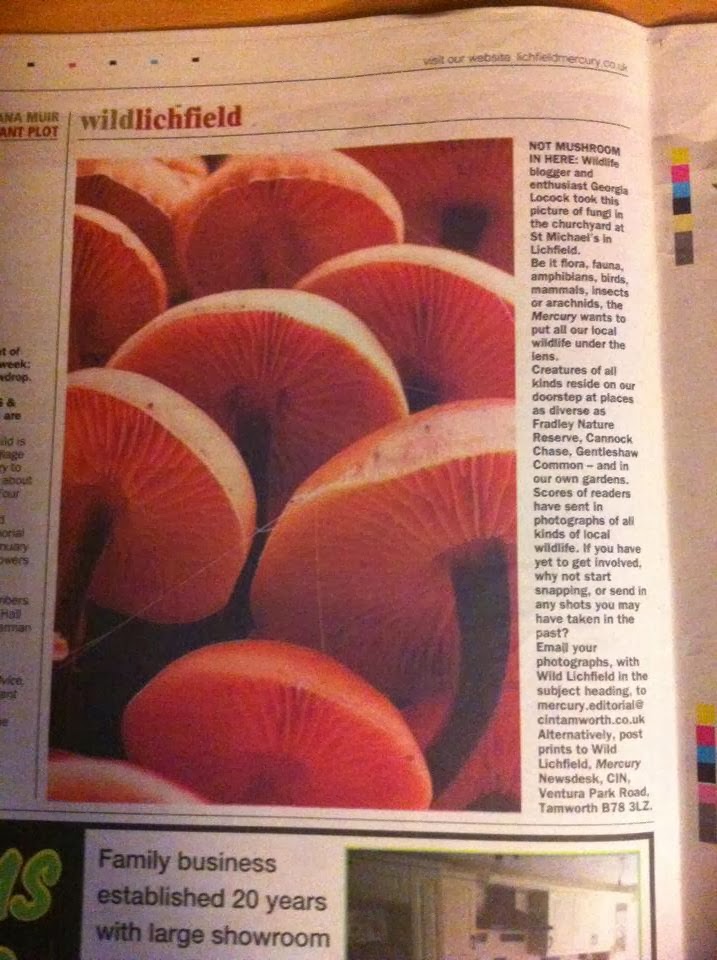 Today when I got home from school I had a look through one of my local newspapers and realized a photo I sent in had featured in the ‘WildLichfield’ section. This is my sixth photo to appear in this local paper along with the story about my Autumnwatch experience.