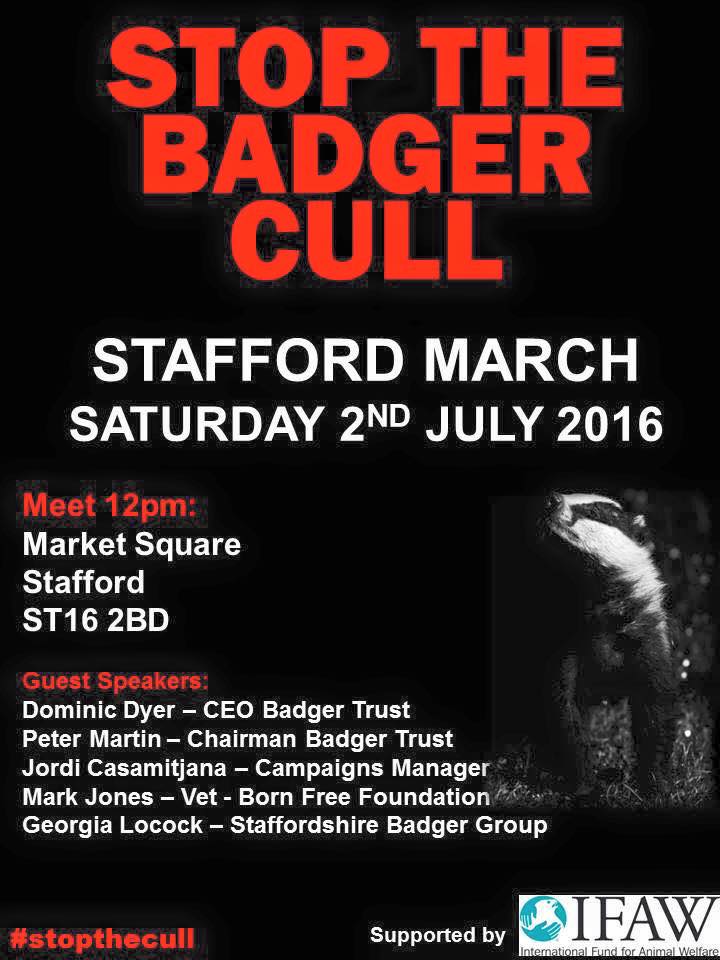 Anyhow, you can listen to the radio interview below. It was also brilliant to have others speak in Stafford on Saturday including Dominic Dyer and Peter Martin from The Badger Trust, Mark Jones from Born Free Foundation and Jordi Casamitjana from IFAW (International Fund for Animal Welfare). Each spoke passionately, precisely and with rich knowledge about a range of topics from the politics of badgers and work of The Badger Trust to the science behind badgers and BTb and also the history of this species that has lived among our landscape for over a quarter of a million years.