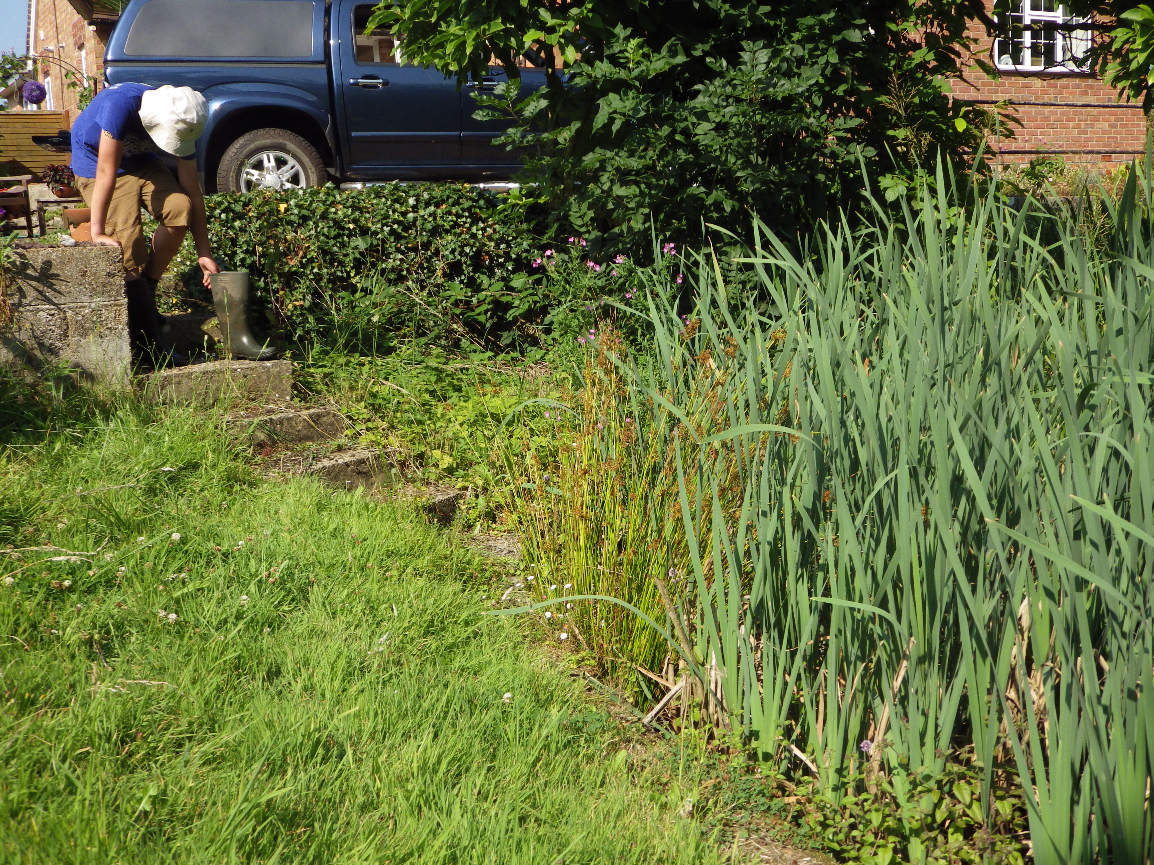 When I got there, before unpacking, I went for a look around the garden. To my surprise the first thing I saw was a common lizard which was incredible! After having some lunch I went exploring round the garden again, but this time with my camera. The weather was extremely hot and I decided to have a sit down when a grasshopper jumped onto my wellie, the wildlife was everywhere! I managed to get a photo and I took some photos of the garden too. One of the reasons why we were having a long stay at my Uncles was so my brother and my other Uncle could start clearing out the pond as over the last many years it has become extremely overgrown. Before the pond became overgrown it was a common sight to see grass snakes, newts, moorhens and much more. Here are some of the photos I took on the first day.