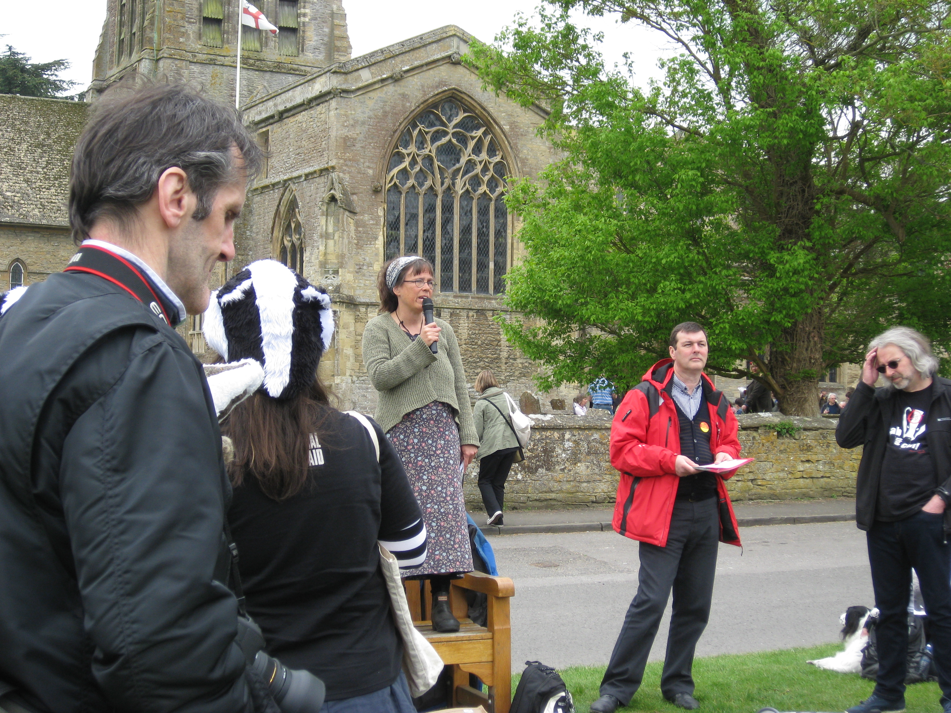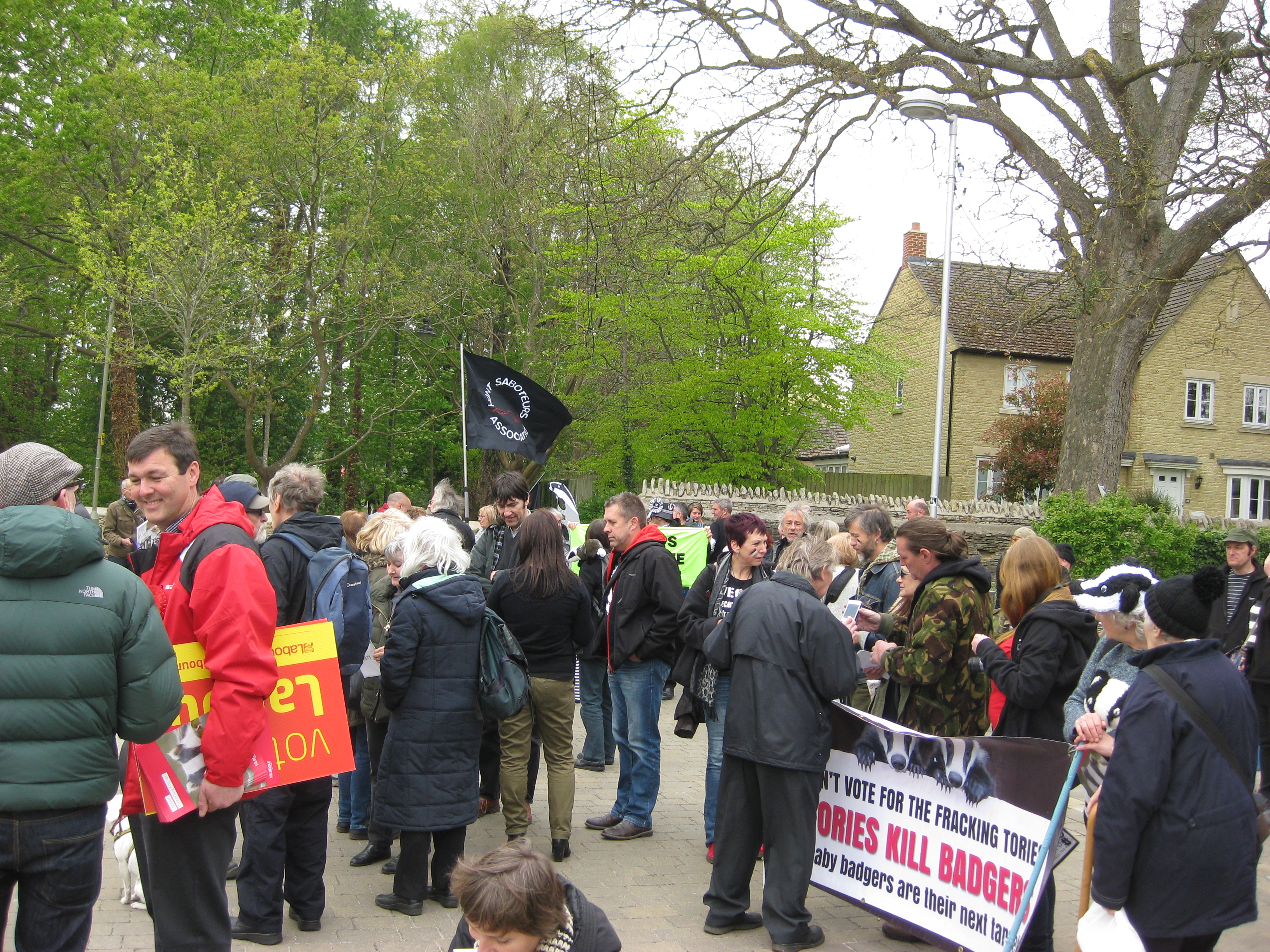 As I just mentioned, a lot of people disagree with cull. So much so that over the past 18 months 30 marches have brought thousands of people from all round the country together to protest against it. Yesterday I went along to the last march before the General Election on Thursday. This wasn’t as such a badger march but it was a march to show how much we care about wildlife and how much it matters. The march took place in Witney, Oxfordshire. This is David Cameron’s constituency and is a Conservative strong hold. Unfortunately even though we’d invited Mr Cameron he didn’t come along but other parties also hoping to represent Witney did. This was the Green Party candidate, Stuart Macdonald, and the Labour candidate, Duncan Enright.