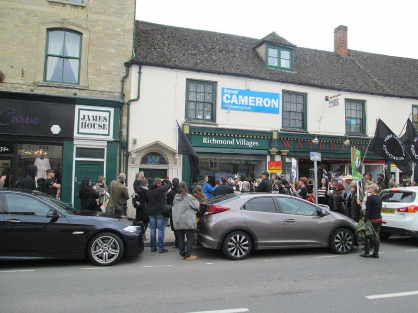 So we all headed back down into the main town centre with the banners and placards held high again, and the shouting echoing down the high street to Mr Cameron’s office. As I mentioned before, unfortunately he wasn’t in but we gathered round outside, the letter was posted and photos were taken too.